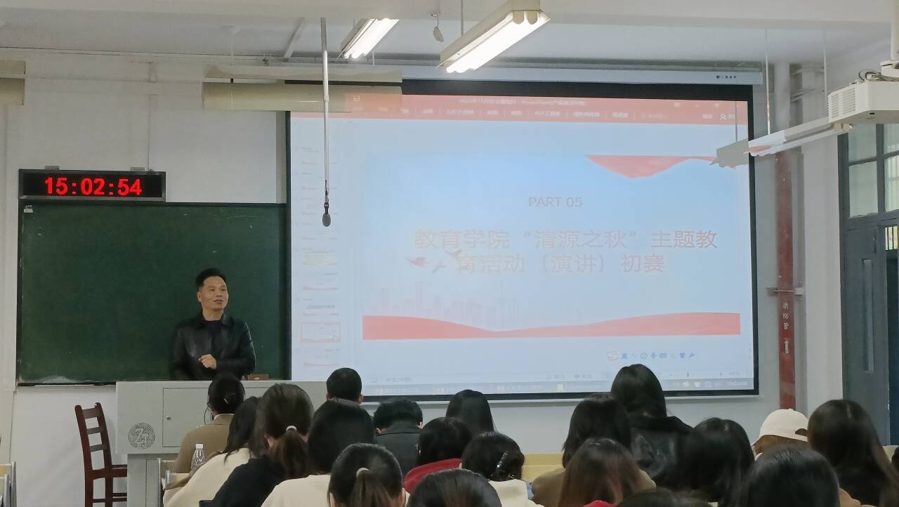 会议最后,污漫 党委书记赵友法总结指出星耀党旗工程·清源之秋——“中华魂”毛泽东伟大精神品格演讲比赛能有效提升演讲者个人综合素质。赵友法鼓励教院学子抓住锻炼机会,挑战自我,并围绕“中国式现代化”,“四个自信”以及“五位一体”拓展讲解本次主题党日自主学习内容,为此次活动画上圆满句号。