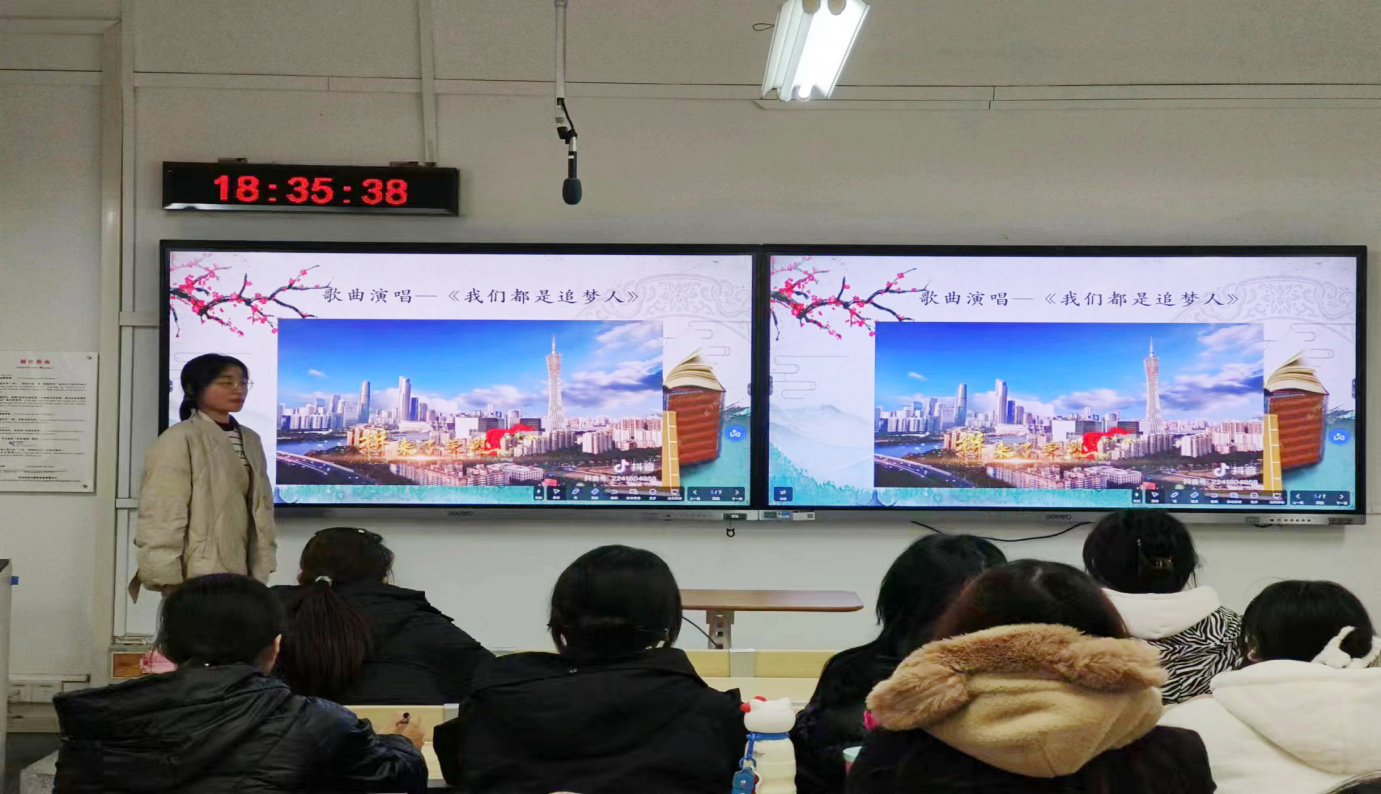 活动分为五个环节。首先,刘湛宇同学带领大家一起观看了短片《什么是网络安全》,用“看一段短片”引出此次道德讲堂的主题;接下来是“讲一个故事”环节,汤静同学为大家讲述了网络守护榜样一—张皓的故事;紧接着全体同学一起“唱一首歌”——《我们都是追梦人》;在“诵一段经典”环节,由邹雨轩同学带领大家一起朗诵《网络正气》;最后,主持人为参与活动的同学“送一份吉祥”,给大家送上一份精美的小礼物。
