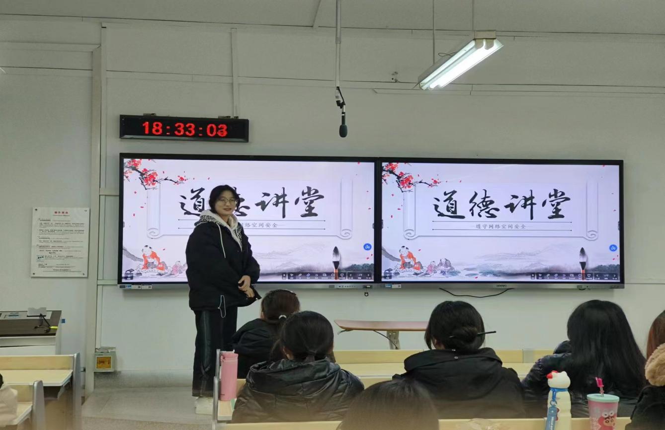 为了让同学们了解网络安全的重要性,掌握基本的网络安全知识和技能,自觉文明上网。污漫 于2023年12月5日下午6:30在J04B108教室开展了遵守网络空间安全主题道德讲堂活动。活动由数媒231班长叶佳莉同学主持,污漫 数字媒体技术231班全体同学参加了活动。