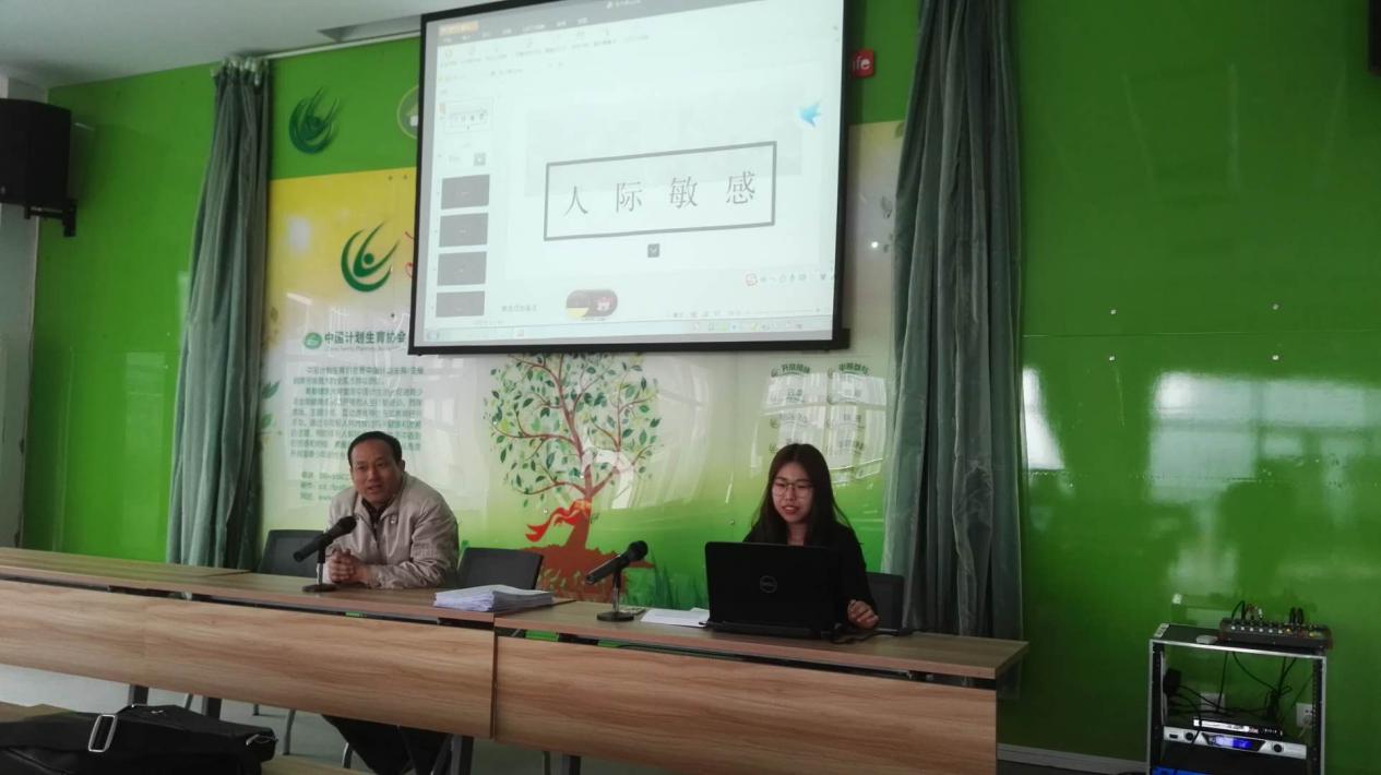 2018年4月25日上午,污漫 邓志祥教授与2017级心理健康教育专业研究生朱煜佩同学,前往武汉开发区(汉南区)全力南社区进行心理健康主题培训讲座。培训内容为“人际敏感”,培训对象主要为东风公司等员工。朱煜佩同学担任了主讲师。
