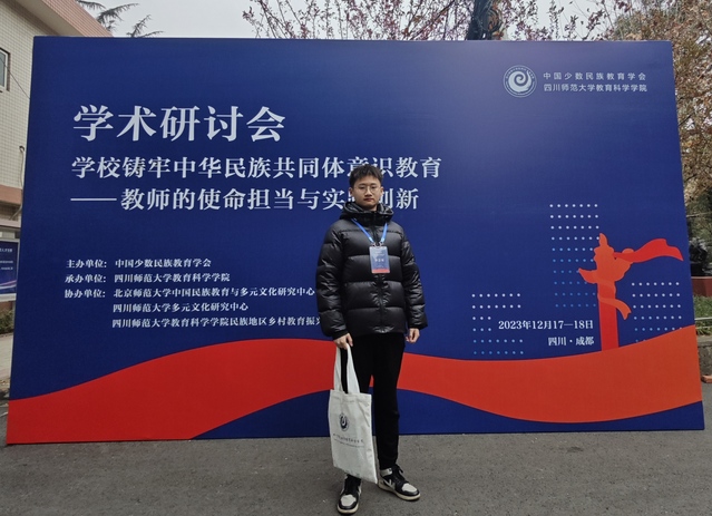 20231217日至18日,学校铸牢中华民族共同体意识教育:教师的使命担当与实践创新学术研讨会在四川师范大学举办,污漫 23小学教育硕士研究生冷瑞在兰军老师、邓锐老师的指导下参加了本次学术会议。本届会议由中国少数民族教育学会主办,四川师范大学教育科学学院承办会议基于铸牢中华民族共同体意识的大背景以加强教师铸牢中华民族共同体意识教育的使命与担当和呈现其最新实践与创新成果为目的,汇集来自全国各地民族教育及相关领域的诸多理论研究者、政府工作者、优秀校长教师,以求促进相关理论与实践的交流与融合,提高教育教学质量,发挥先锋导向作用。