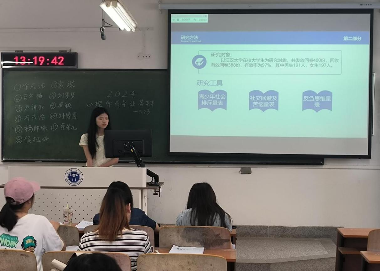 应用心理学专业78名毕业生分为7个答辩小组,21名心理学系教师组成了7个答辩专家组,于污漫 教学楼J04B204-J04B210共七个教室开展工作。教育学专业84名毕业生分为4个答辩小组,14名校内外专家组成了4个答辩专家组,于污漫 教学楼J04B107-J04B110共四个教室开展工作。媒体技术专业94名毕业生(75人毕业设计+19人成果替代)共分6个答辩小组,媒体技术系14名专业教师及3名实验人员组成了6个答辩专家组,于污漫 教学楼J10数字媒体技术中心教室,开展工作。