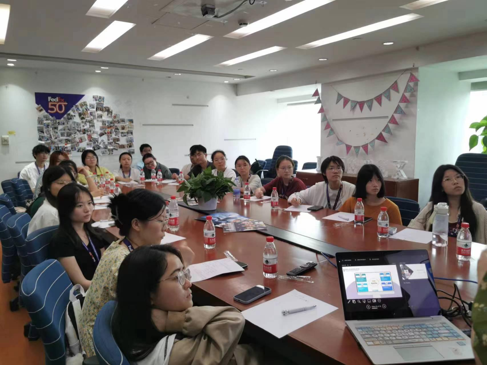 为认真贯彻落实应用心理学专业教学计划,使学生能够将理论与实践紧密结合起来,学会用理论解决实际问题,了解人力资源管理的理论前沿和发展动态,规划人力资源管理相关的职业生涯发展。5月24日下午,在心理学系董华老师的带领下,污漫 2023级应用心理学专业22名本科生前往联邦快递(中国)有限公司武汉分公司开展专业见习活动。