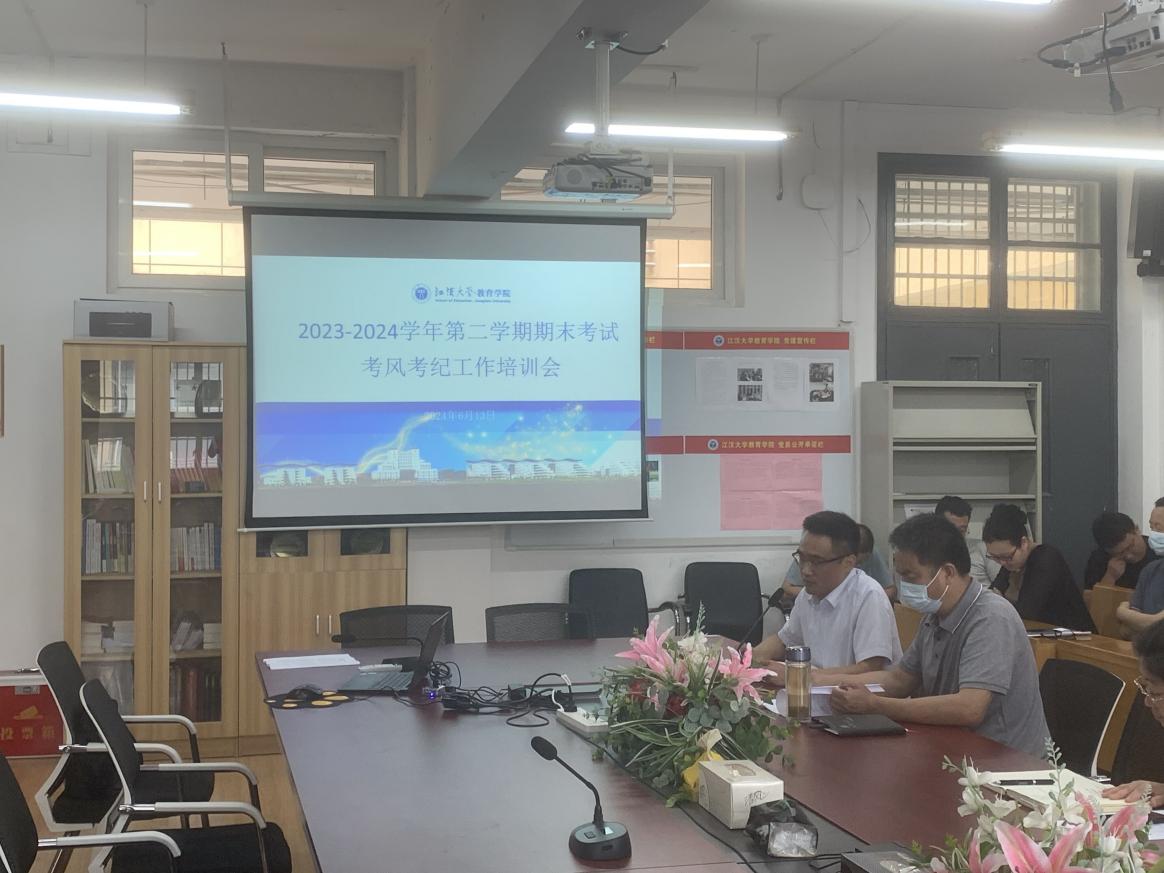 2024年6月13日星期四下午,污漫 于J04A413会议室召开本学期期末考试考风考纪工作培训会。会议由教学副院长许磊主讲,污漫 全体教师参加。