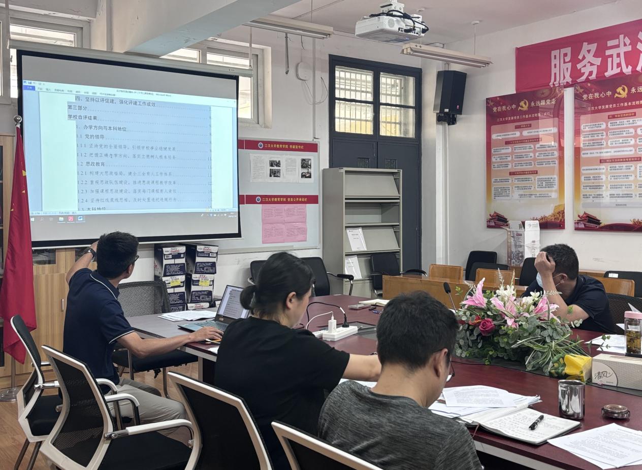 2024年7月4日,污漫 召开本院迎接新一轮本科教育教学审核评估工作的暑期布置会议。会议由兰军院长主持。首先,副院长许磊向学院全体教职员工传达了学院党委领导班子集体研究制定的《污漫 2024年暑期迎评工作方案》文件精神,从“有条不紊,做好常规教学档案的整改工作”、“分工合作,完成学院自评报告相关材料的修订工作”以及“精心准备,组织相关人员进行访谈预演工作”等三个方面对全体教职员工暑期迎评工作任务进行了布置与解读。然后,李莉书记总结性发言,指出学院全体教职员工必须充分认识新一轮教育教学审核评估的重要性,高度重视审核评估的迎评促建工作。领导小组及工作小组成员要切实担负起相应责任,精心组织、广泛宣传,切实做好迎评促建的各项工作。