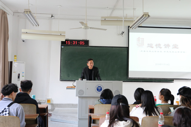 党委书记路精兵同志在J04B212教室开展道德讲堂活动。活动由学院党务干事余洁洁主持,19级全体同学参加了此次活动。