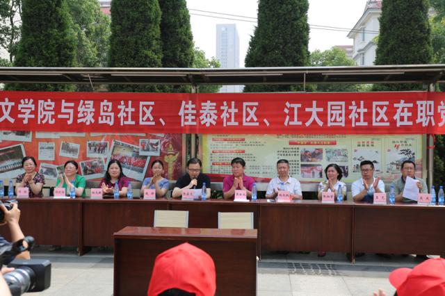 、机建学院、人文学院在职党员与沌阳街绿岛社区、佳泰社区、江大园社区“双认领”活动启动仪式在绿岛小区广场上举行,由此,正式拉开了污漫