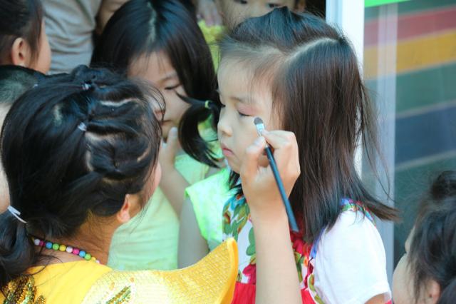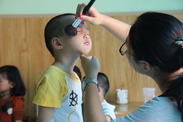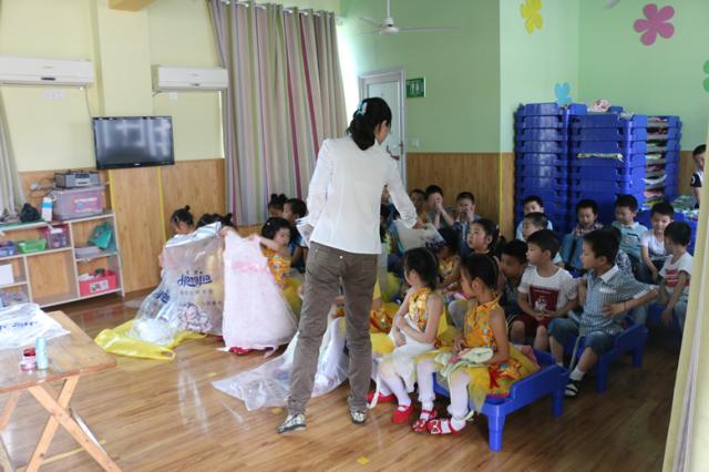 晚会开始前,志愿者们分头行动,一部分为小朋友们化妆,整理服装、设计造型,另一些则布置会场,装点舞台,做幕后准备工作。晚会开始,志愿者们在幕后引导小朋友依次上传和退场,热情地指导小朋友们的表演。晚会在轻松愉悦的氛围中开展,小朋友们精彩的表演赢得了观众们热烈的掌声,志愿者们无私奉献的行为也得到了果果幼儿园的充分肯定。