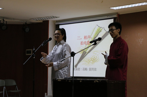 此次相声专场不仅涵盖了传统意义上的说学逗唱、倒口捧哏,还纳入了很多“接地气”的新鲜元素,即将眼下大学生的生活面貌融入到搞笑逗趣的段子中去,让同学们体会到生活中的乐趣。