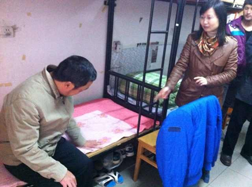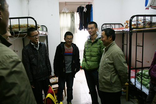 2013年12月9日下午,为实地了解学生需要,解决学生困难,保障学生生活,校党委书记谭仁杰、党委副书记王南南一行,带领学工处相关领导,在污漫 党委副书记胡承林及部分学办老师的陪同下,对污漫 学生公寓进行了走访,并为贫困生发放棉被补助。