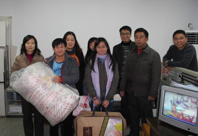 的领导十分关心家境较为贫困的异地学生是否有足够的越冬棉被御寒。因此,在经过前期的寝室走访以及调查后,举行了关怀送温暖活动,向三位身处异地的污漫